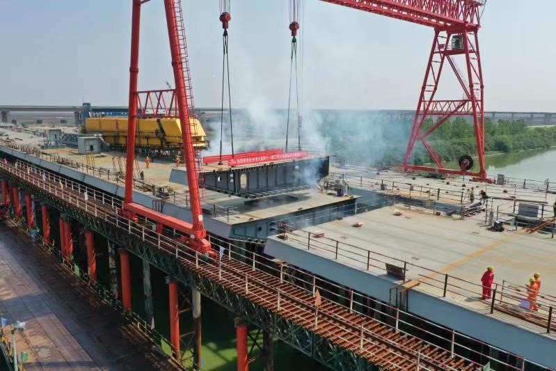 為確保工程進度,項目監理機構人員放棄休假,趕在“五一”假期節前加班加點,要求施工單位倒排工期計劃,設專人進行全程施工跟進,準確掌握施工進度及施工中遇見的不利因素,及時解決難題。項目監理部不僅督促施工單位嚴格執行自檢、專檢及聯合驗收制度,保證臨時支架剛度、強度及穩定性,保障吊裝安全,派專人監督施工單位人員進行監控量測,準確測量支架及胎架的變形量,保障鋼箱梁的安裝線型,而且嚴格按照專家論證方案執行,包含吊裝設備選用,噸位大小、站位、配重、臨時支架搭設及吊裝順序,保障施工安全。