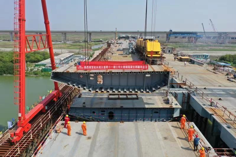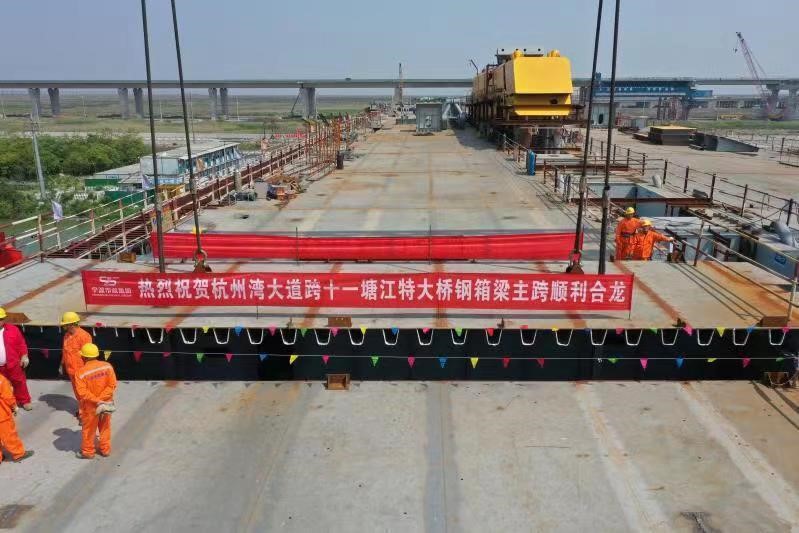 喜報!公司監理的杭州灣大道跨十一塘江特大橋主跨順利合龍!
