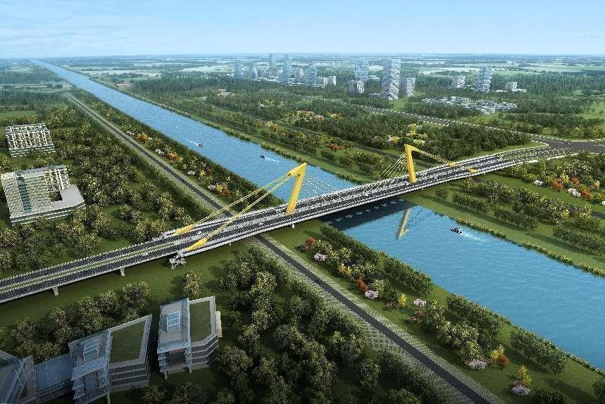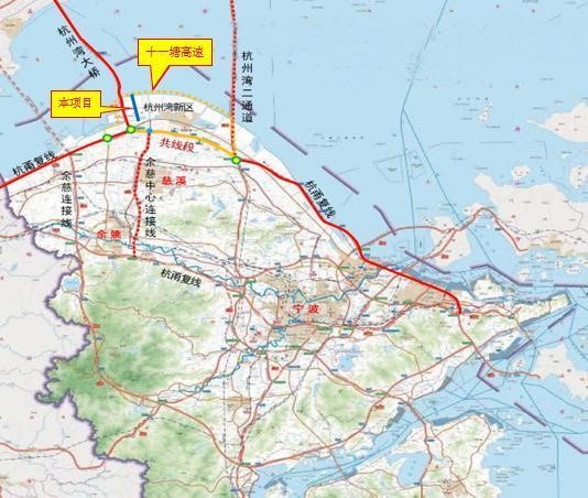 杭州灣大道跨十一塘江橋梁工程起點與十一塘高速連接,終點與杭州灣大道與玉海西路平交口相連,是寧波前灣新區連接十一塘高速的控制性工程。
