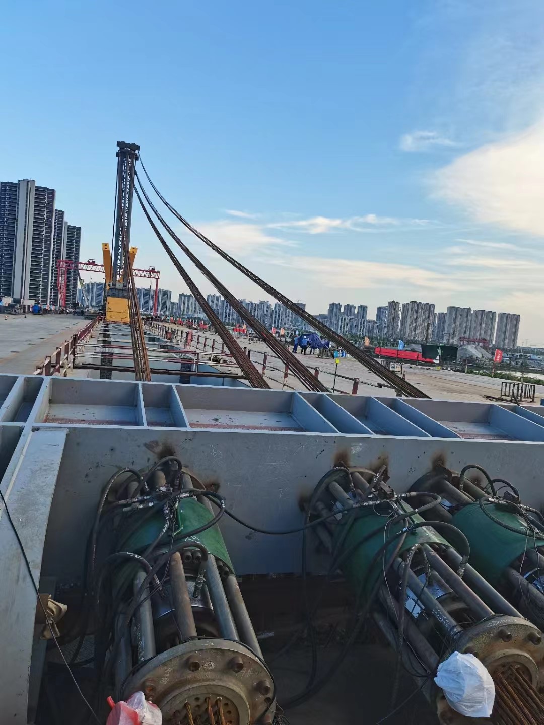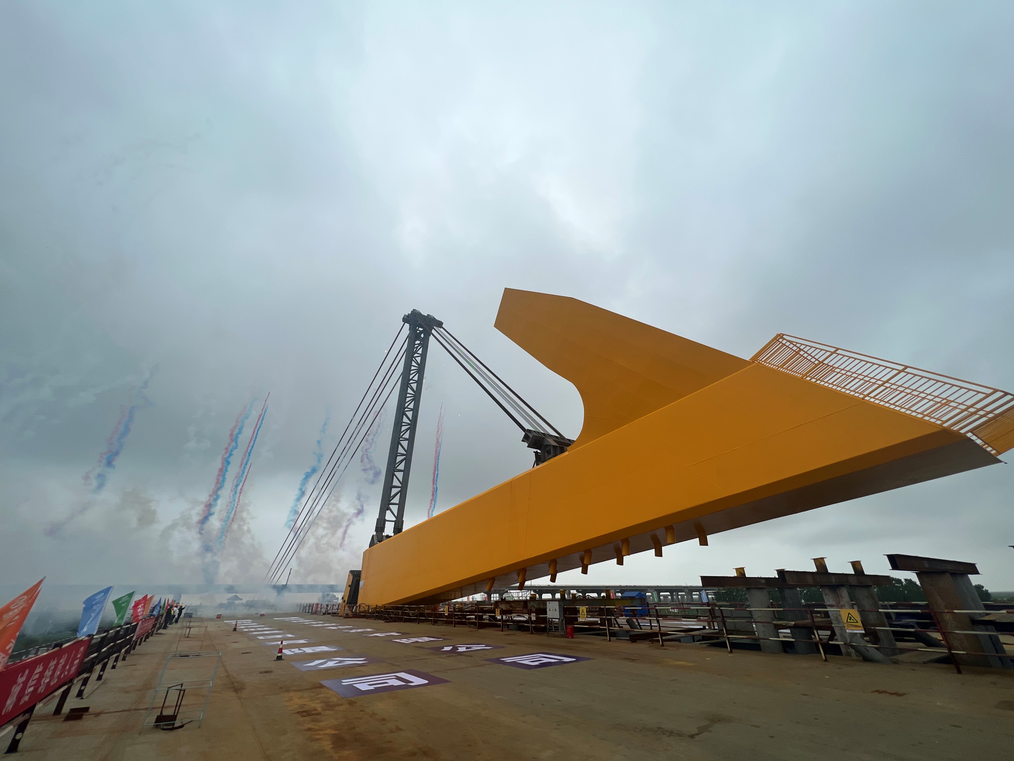 重達1246噸的超大鋼塔豎轉完成后,塔體姿態控制精確,測控數據正常,應力、位移均符合設計及專項施工方案要求。這不僅標志著該工程最大施工難點被攻克,還意味著國內首座內傾式全鋼結構斜拉橋鋼塔成功轉體。