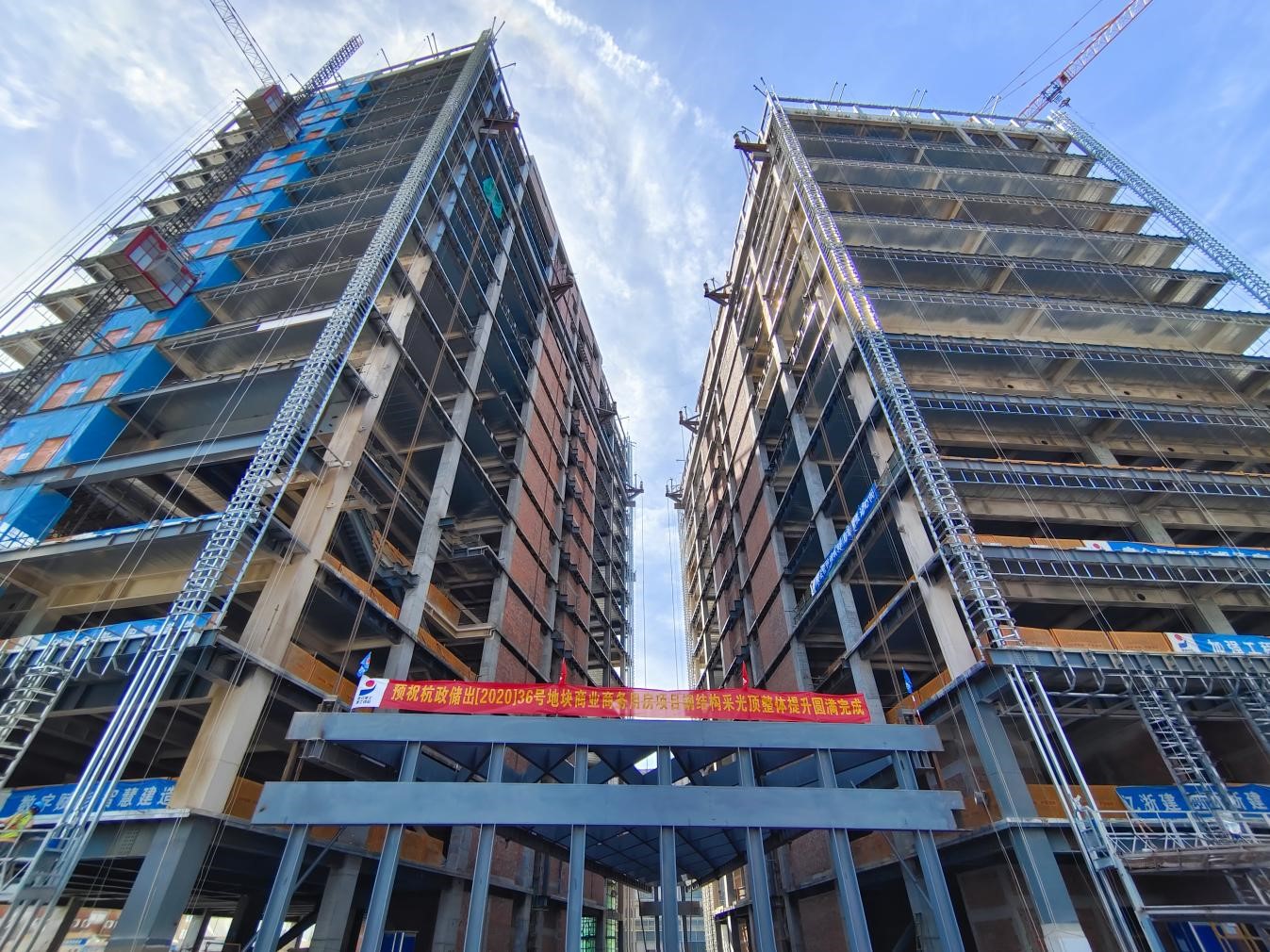 公司監理的杭政儲出(2020)36號 地塊商業商務用房項目鋼結構采光頂及連體 桁架整體提升工程圓滿成功